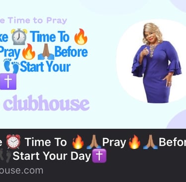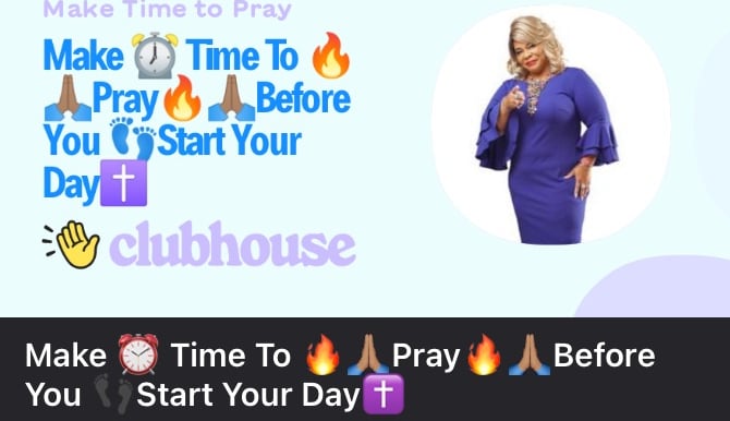 We have many events and auxiliaries that take place in this ministry such as daily prayer room on Clubhouse, and many weekly auxiliary rooms.